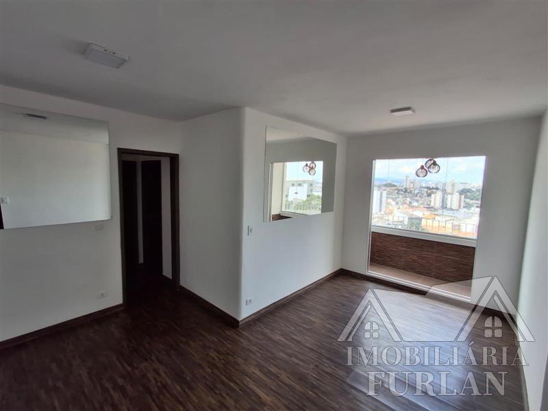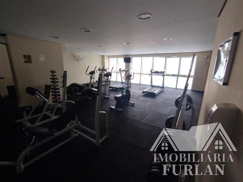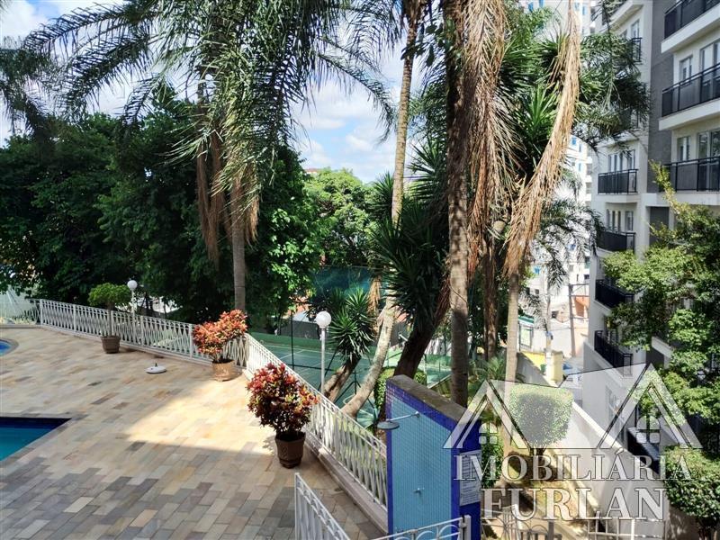 2 dormitórios, sala c/ sacada, cozinha, banheiro, área de serviço c/ WC, salão de festas, piscina, playground, quadra, churrasqueira, academia e 1 vaga.